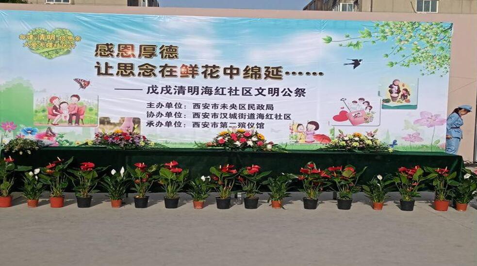 海紅物業(yè)公司與海紅社區(qū)攜手西安市第二殯儀館在海紅小區(qū)文體廣場開展以“感恩厚德、讓思念在鮮花中綿延”為主題的綠色公祭活動。未央?yún)^(qū)民政局、漢城街道辦、西安市第二殯儀館的相關(guān)領(lǐng)導(dǎo),海紅物業(yè)公司、海紅社區(qū)職工群眾600余人參加了此次公祭活動。