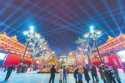 今年的光影將進(jìn)一步展示最美夜西安的魅力。大唐不夜城·新唐人街全方位融合街景已進(jìn)行氛圍布置,共設(shè)置42組文化氛圍裝置,分為燈組氛圍、裝置氛圍、藝術(shù)景觀小品、文創(chuàng)藝術(shù)裝置四個(gè)類別。目前,已完成團(tuán)花繡球燈組及部分文創(chuàng)IP藝術(shù)裝置共5組。其余正在陸續(xù)進(jìn)場安裝及制作中。作為世界燈光重鎮(zhèn),法國尼斯市也將在春節(jié)期間表演燈光秀,為西安帶來世界的問候。此外,西安城墻還將推出AR互動(dòng)體驗(yàn)、“盛唐第一門”3D光影大秀等活動(dòng)。